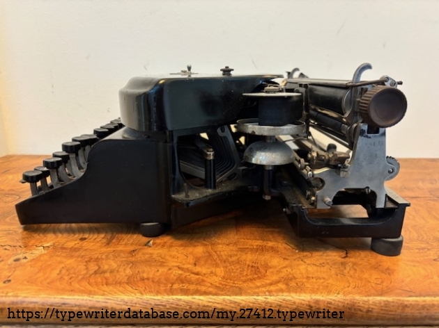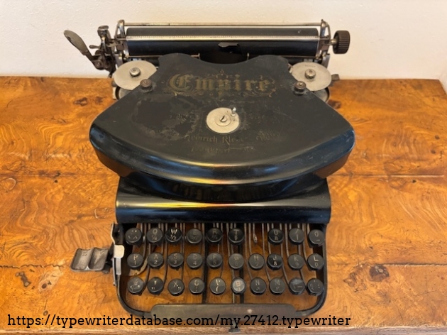 This one would need to be filed under (Brand) Empire (Germany) and (model) Empire. These were the first typewriters produced by Adler Fahrradwerke vorm. [vormals = formerly] Heinrich Kleyer Aktiengesellschaft. My current research indicates that some of the production was sold abroad under the „Adler“ brand as early as 1900, whereas all of the production was renamed Adler in 1901 (forthcoming).