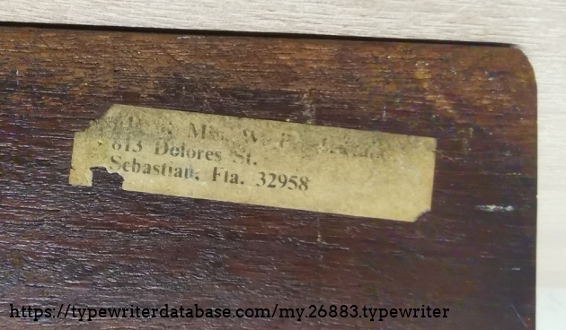 It's my oldest typewriter. I don't know why the bottom wooden board has an address from Sebastian, Florida. Maybe the previous owner? And how did this typewriter end up in Slovakia?