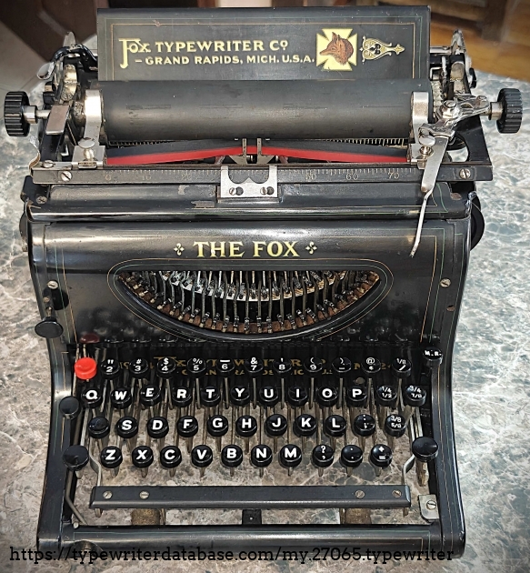 This is the third of the three Fox Visible Model 24 typewriters that I acquired, and the earliest of the three. It seems to be the earliest Fox 24 with a gallery in TWDB as of this writing (12/30/2025). Like my other two Fox 24 machines, I won this one in an eBay auction. My electronic records are lost on a crashed hard drive, but I have written notes indicating that I acquired this before 9/4/2001, and most likely in July or August of 2001. From memory, my cost was between that of my 1915 Fox 24 (S/N 75096) and my 1917 Fox 24 (S/N 107271), somewhere in the range of $125 +/- $20.