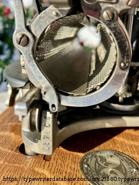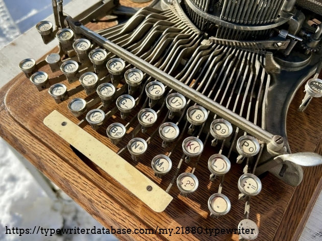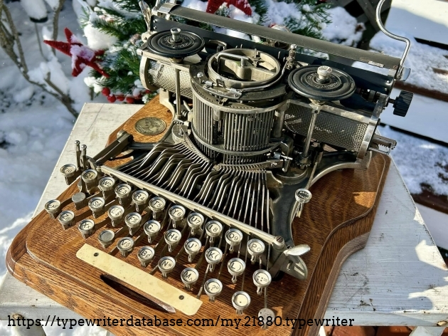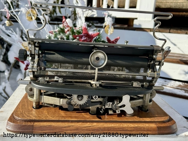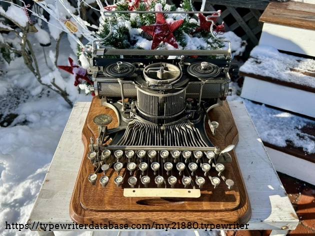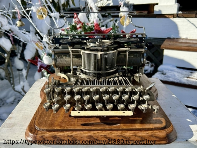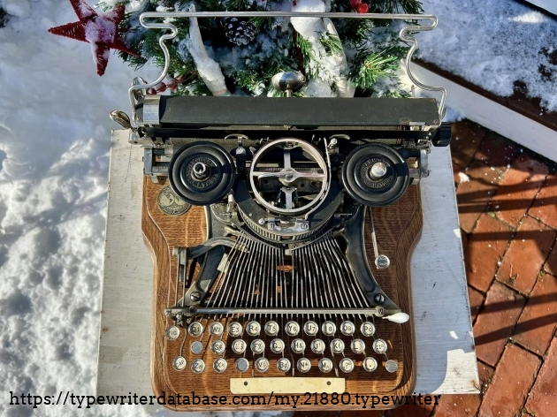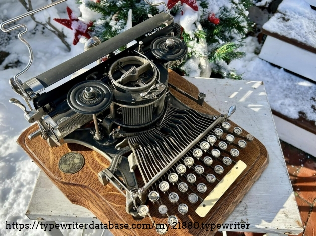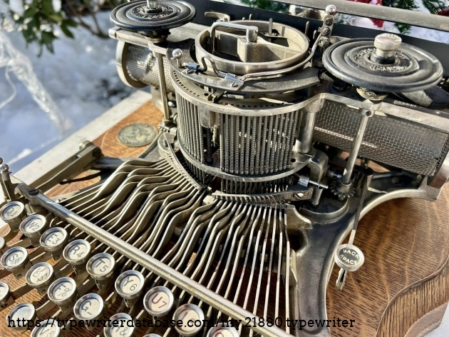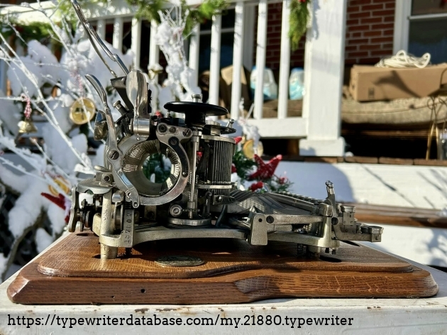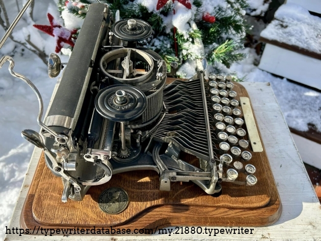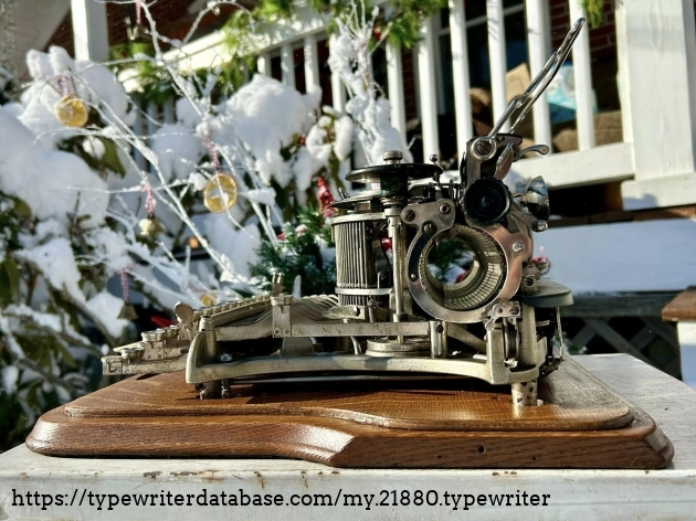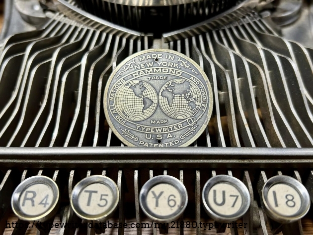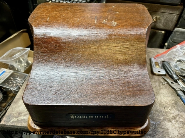 This Hammond 12 with the unusual green-painted base was purchased at auction from the estate of Ed Cusher in my hometown of Waterloo, Iowa, in January, 2024. According to the listing, Ed Cusher was a veteran of the US Army Signal Corp in the Korean War, and then worked for 30 years as a milkman for Carnation, before then being a flower deliveryman. Apparently he loved to go to auctions, buy and fix things. He passed away in 2023 at the age of 95, leaving some 11 typewriters behind, including this one.