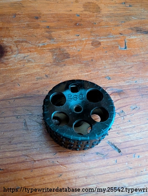 First things first, I'm going to start off with the least significant thing in my opinion given that doesn't actually affect the mechanical bits, The pharmaceutical keyboard layout, most of the middle row's figures are tailor suited for pharmaceutical use, theres an Rx key Fluid ounce key and a lot more that im unable to put here. The second most important thing is the typewheel, which is sadly a little cracked , kind of sucks but it does appropriately match the keyboard and is for the most part in good condition, and finally, oh my goodness they shrunk the carriage, I'm pretty sure it's half sized which means that there's like a good inch of the carriage where there's just nothing going on and it really doesn't need to be there. But because I geuse they didn't want to make an entirely new carriage for this machine they they just subtracted from it, so they just needed to make an entirely new, platen and knobs for this machine, also theres a special paper clip to clip the paper directly to the platen while typing. The machine is also missing a few pieces. I don't know if it's supposed to be missing the pieces, but I've looked at other pharmaceutical models and they are missing the same pieces, so I'm assuming that the pieces that are missing are supposed to be missing, those pieces will be very apparent once you actually start looking at the pictures. There's also some weird scratches on the underneath of the machine. Looks like someone tried to carve out H l but in italics or something.