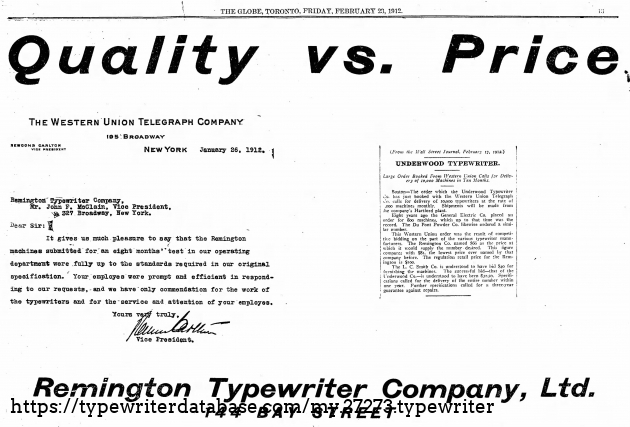1912 Underwood Western Union Special #WU4016R