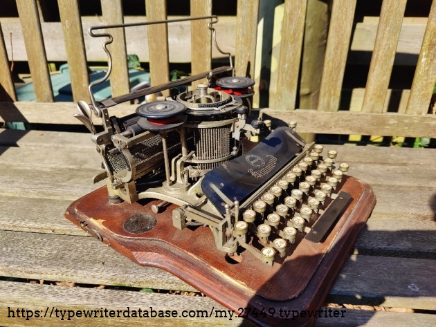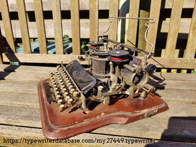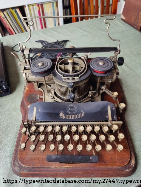 Hammond Multiplex Mathematical model. Has one four row shuttle, metal ringed keys but the earlier black ones for the special shifters, two backspacers, one for half and one for full backspace, a little protrusion to stabilise the shuttle on the anvil. That should be all of the changes.