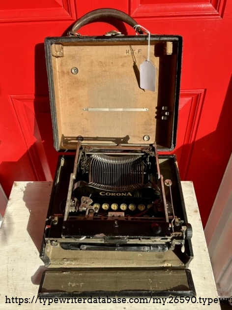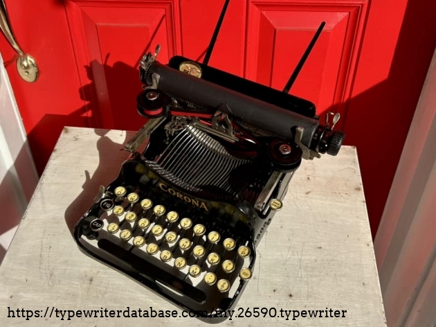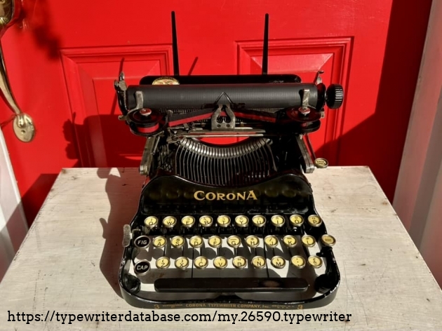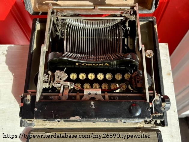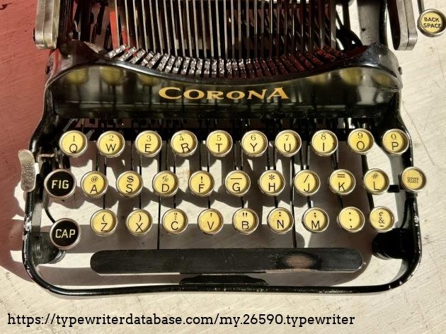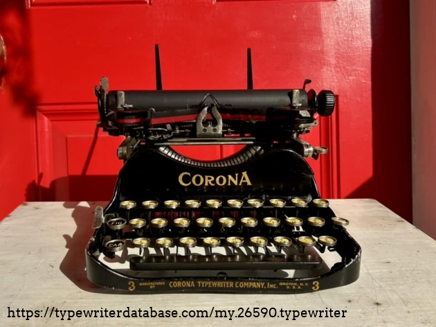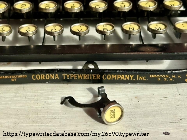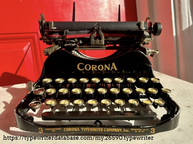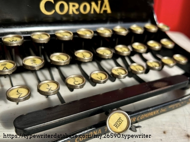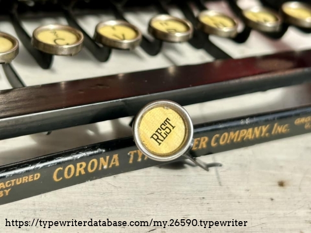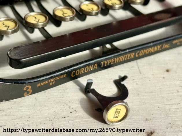 A nice 1915 Corona 3 with the coveted "Rest" key. Purchased from the Upper West Side apartment of Peter and Tikva Tytell in October of 2024. Interesting that it has the redesigned body frame with the scooped-out back panel. Also: the three-position color selector, and the one-sided ribbon vibrator, all of which seem to have lasted for only a few months in 1915, judging by some of the similar (and different) models listed here on the database.