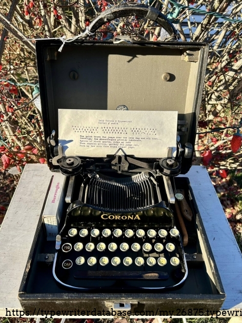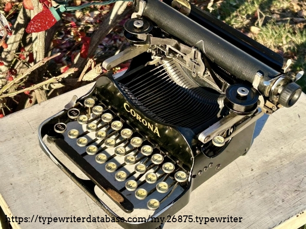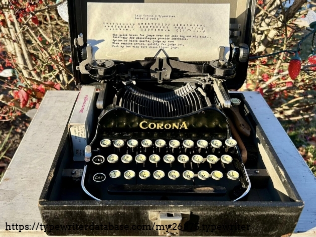 A nice Corona 3, that didn't take too long to whip back into shape. With brushes and replacement ribbon. Purchased from a fellow typewriter enthusiast in Royersford, PA in November of 2025.
