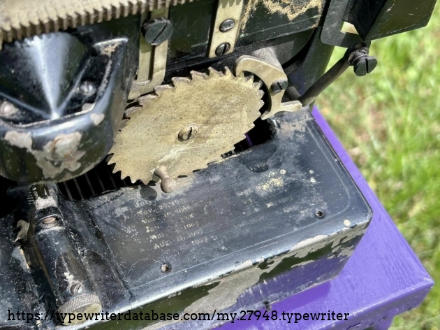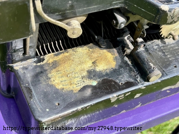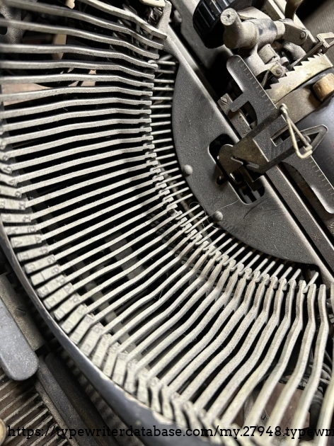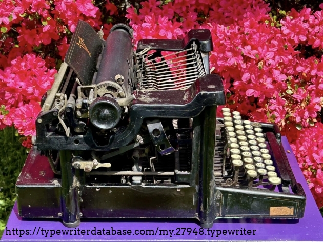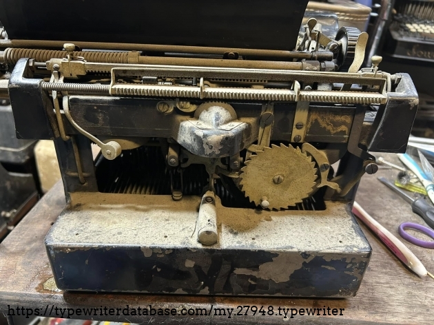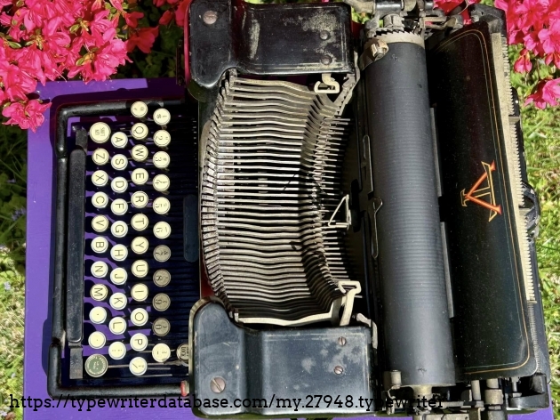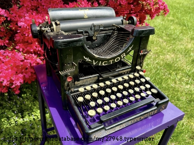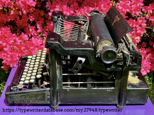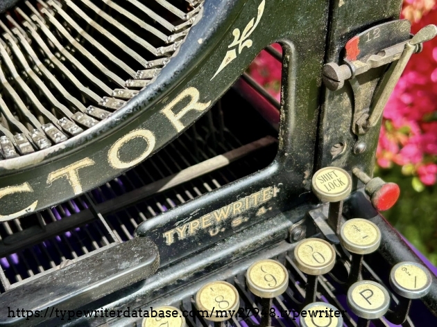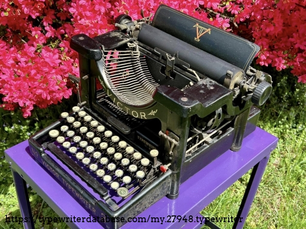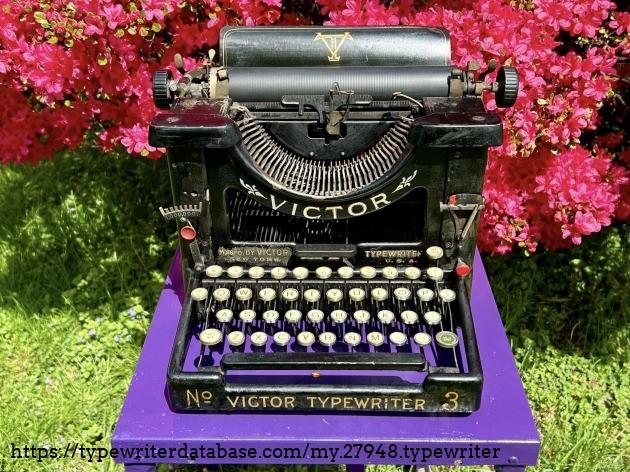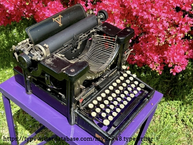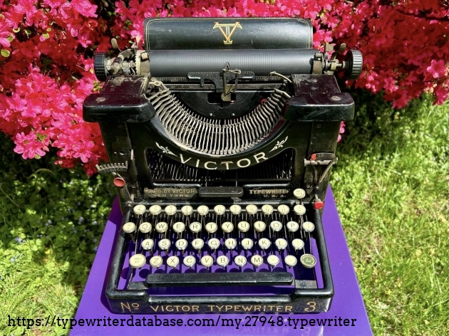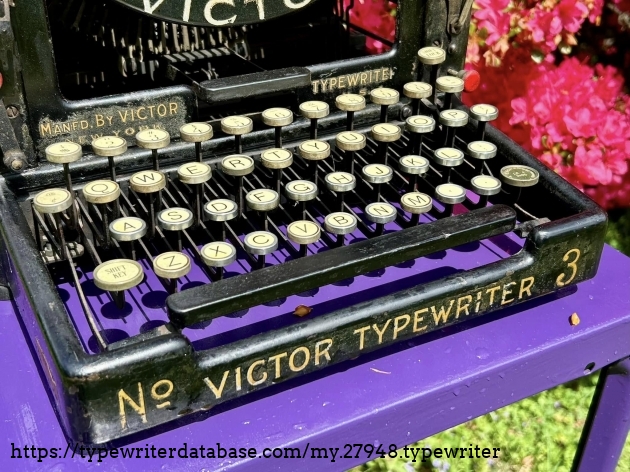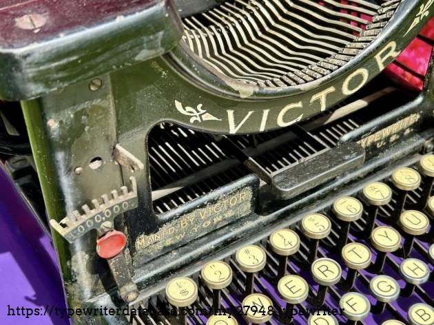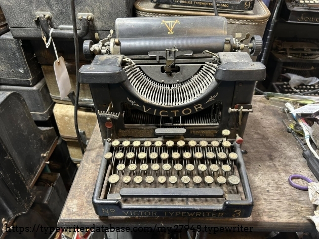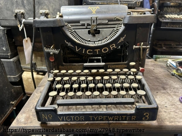 This Victor 3 came from the apartment of Peter and Tikva Tytell on the Upper West Side of Manhattan in October 2024. It was caked in at least 50 years of dust, and has what looks to be a Tytell inventory sticker on the side, and a dealer tag from the (Nemzer) Typewriter Exchange (of Brooklyn) on the shift key. Needs spools and a new carriage lever... like so many Victors.