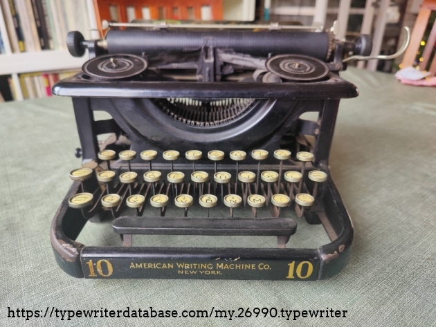 The Century 10 typewriter made by the American typewriter company in New York. C puts its production date in October and the 9 puts it in 1919. Favourite feature is the Ideal like segment shifting; goes up for capitals and goes down for figure shift.