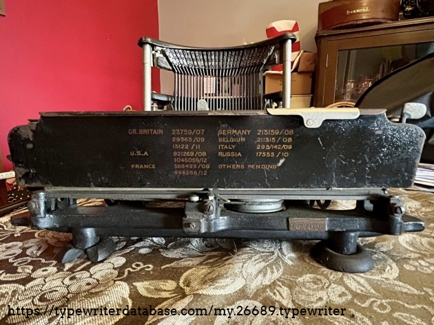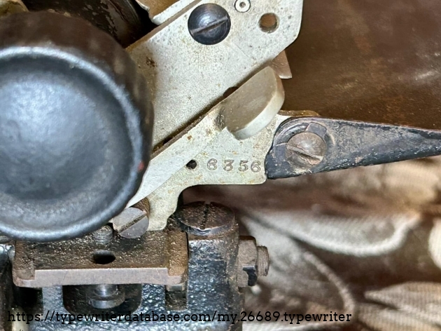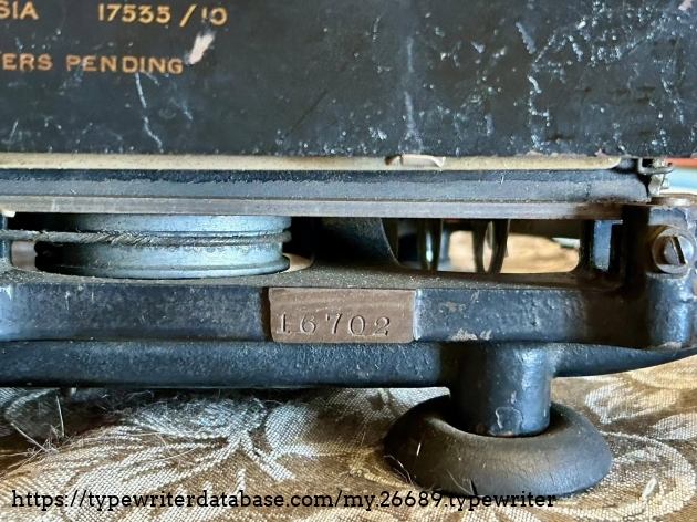 This Imperial A with the metal spacebar is a bit of an enigma, as it has two vastly different serial numbers: 16702 on the base, 6356 on the carriage. Obtained in October, 2025.