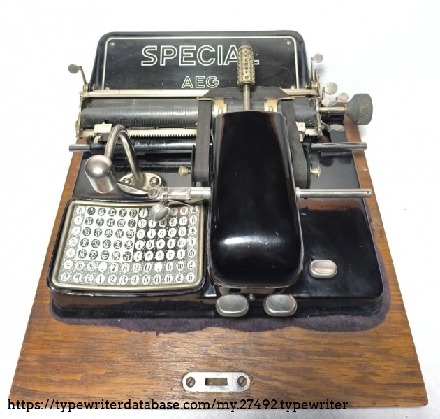 I bought this machine on February 21, 2026 at a collectors' meeting of the IFHB/SHBS in Solothurn, Switzerland. The AEG Special is a rare variant of the AEG Mignon No. 3 or No. 4 (in this case, the Mignon 4 because it has a backspace button). I got this machine from the Enter Technikwelt collection. Purchased. The machine has the very rare Fraktur typeface. It also includes a German-French and a German character set with their corresponding type cylinders.