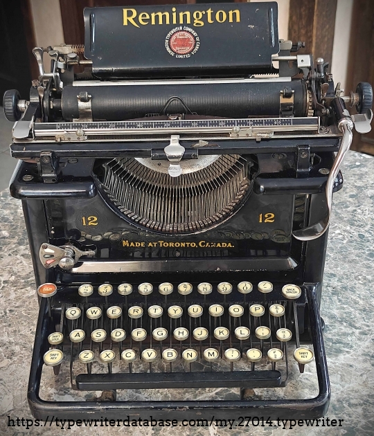 This Remington Model 12 typewriter was manufactured in Toronto, Canada, in August of 1926. It's my very first eBay acquisition of any kind. I won this at auction on August 24, 1998. The seller was none other than Chuck Dilts, who went on to become the Editor of the Early Typewriter Collectors newsletter in the early 2000's. My winning bid was $52.50, and with shipping costs coming to $17.59, my total cost was $70.09. This is my second typewriter acquisition that it still in my collection.