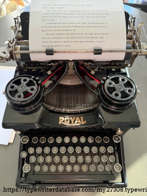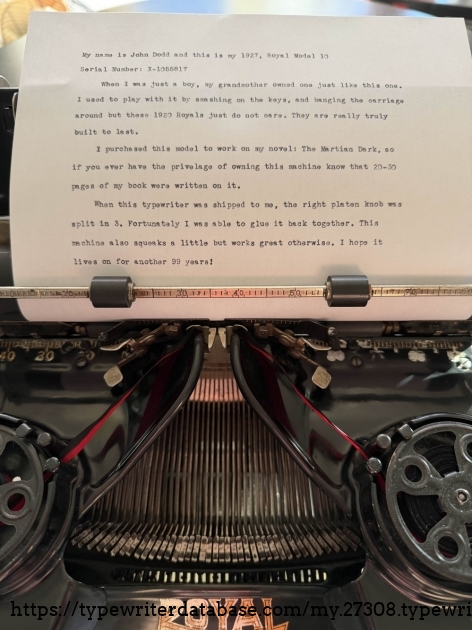My name is John Dodd and this is my 1927, Royal Model 10