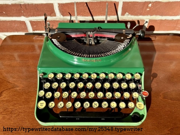 A gorgeous, green Remington Portable 3. Purchased in Garden City, NY in February, 2025, and the previous owner stored it since 1994.