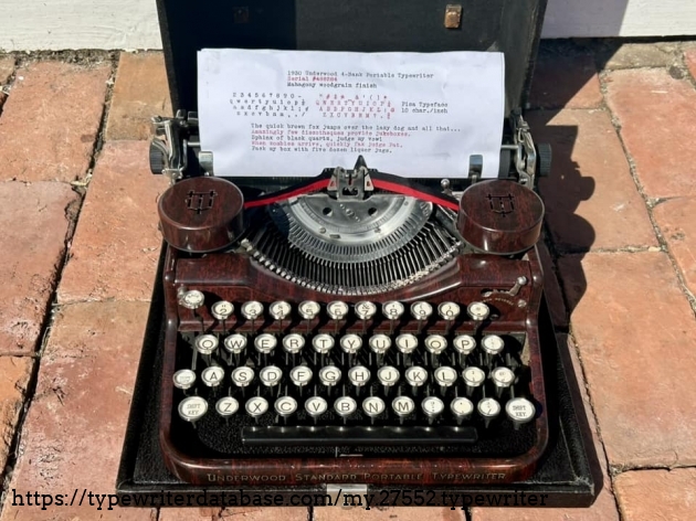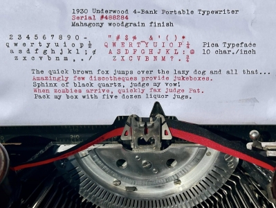 A gorgeous 4-bank portable in the mahogany woodgrain finish. Bought from a fellow typewriter enthusiast in Royersford, PA in February of 2026.