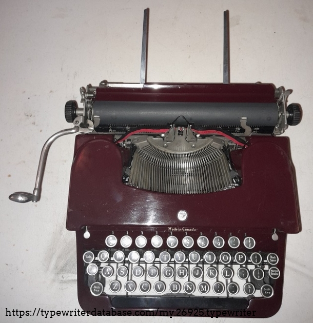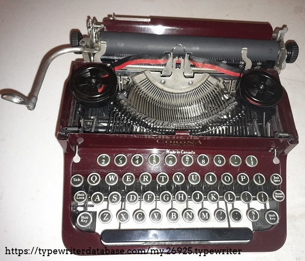 UK Corona S, made in Canada. Lovely colour. Really nice to type on. It was missing the instruction label underneath the cover so i typed one out and Pritt sticked one on. At least that glue wont harm the paint work.