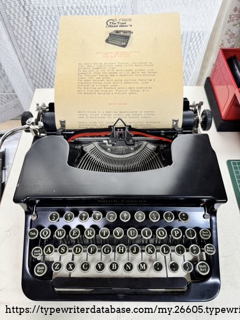 RESEARCH NOTE: When researching the Smith Corona Standard on a computer with lots of screen real estate, you may find that launching the Smith Corona Serial Number page and the Smith Corona Standard By Model/Year/Serial page in new browser windows can give you interesting perspectives on changes throughout the model series.
