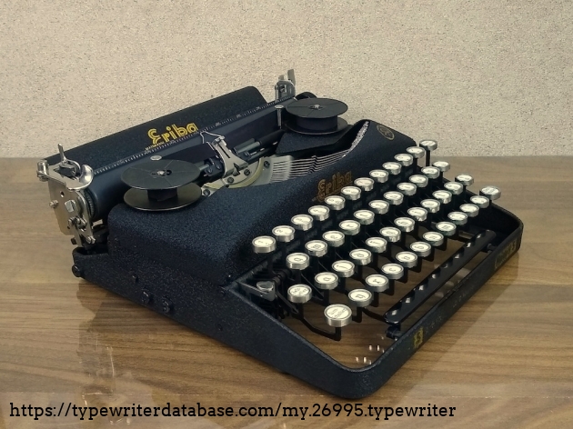 I recently purchased this beautiful machine from a collector/refurbisher. This is a rare piece because of its Fraktur font. Fraktur is different from Olde English, and include long-s and short-s as well as ligatures (see typeface specimen). Typing is very soft due to the Seidel & Naumann type mechanism. Please note its uncommon wrinkle finish. Also, the chrome and the rest of the machine is free of rust.