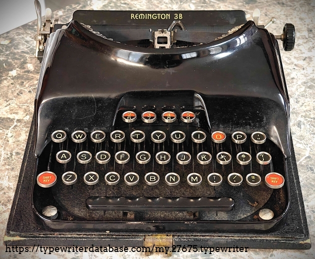 2026-03-21 Gallery Creation. I found this Remington 3B on eBay a couple weeks ago, with a "Buy It Now" option at $299. I figured it was a fair price for a scarce machine, so I hit "Buy It Now" on 3/8/26, and now I have made my first typewriter purchase on eBay since my Olivetti-Underwood Studio 44 (#458932) on 1/5/2008. Shipping was $34.05 from Kansas City, MO, so my total came to $333.05. I have done nothing with the machine yet, in terms of cleaning and repairs, but I was able to make a typing sample with the ribbon that it already had installed. The machine appears to be in very good shape for its age.