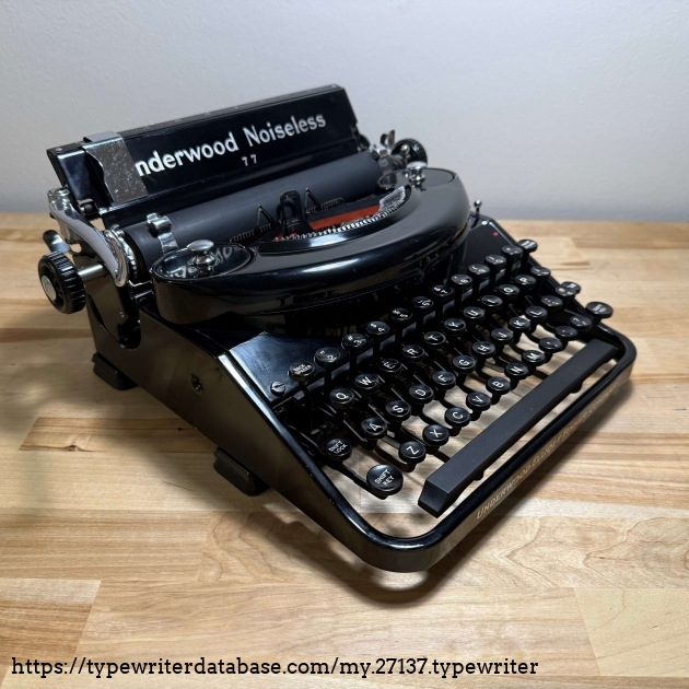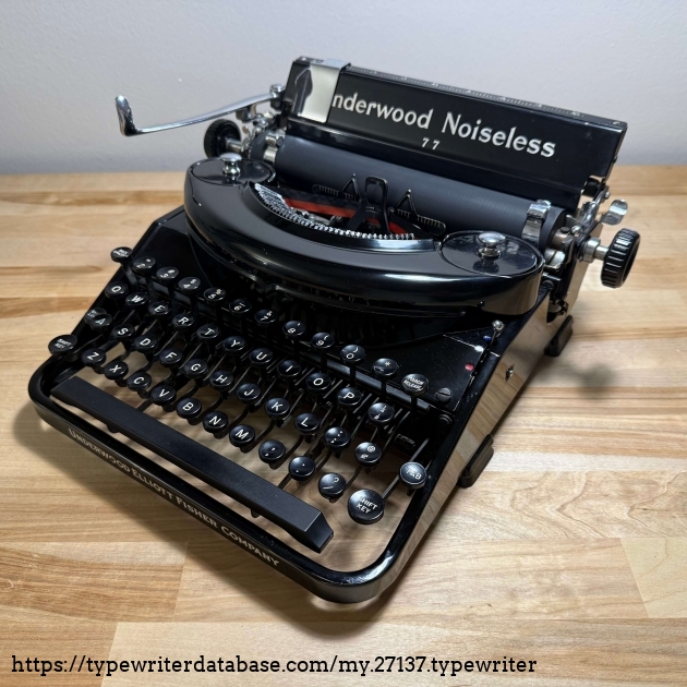 RESEARCH NOTE: When researching the Underwood Noiseless 77 on a computer with lots of screen real estate, you may find that launching the Underwood Serial Number page and the Underwood Noiseless 77 By Model/Year/Serial page in new browser windows can give you interesting perspectives on changes throughout the model series.