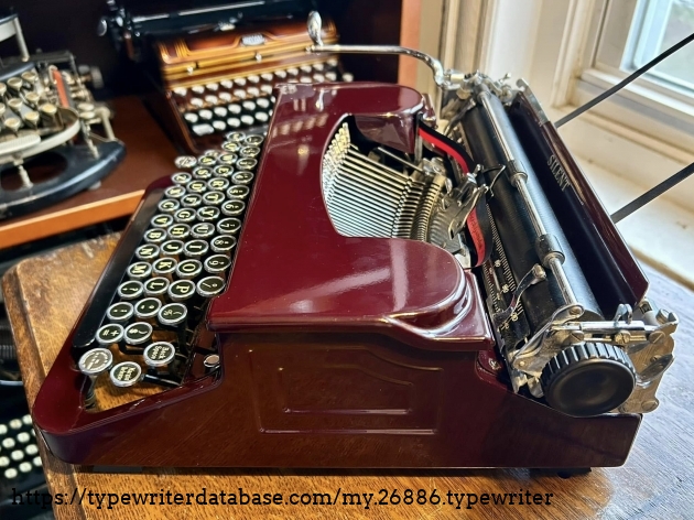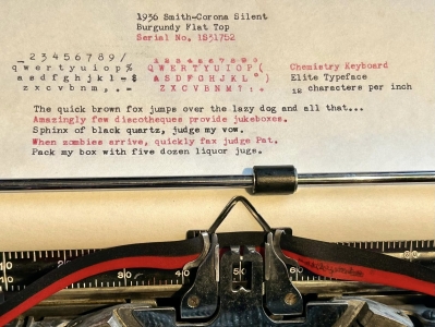This may be the nicest burgundy flattop I've ever owned. Bonus: Chemistry keyboard with subscript numbers. Purchased from a fellow typewriter enthusiast in Royersford, PA in November, 2025.