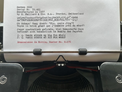 Fellow typospherians, may I introduce myself? I'm Brancaleone da Norcia, Typewriter Hunter and TWDB Patron from Germany. My main focus is collecting portable machines from the 1950s to the 1970s. I particularly appreciate good industrial design and durable construction. Many Olivetti models inspire my enthusiasm. I'm pretty good at touch typing, enjoying it a lot – it's very contemplative. At last, I have a particular fondness for pangrams and am always happy to discover new ones. Looking forward to get in touch with you, kind regards, Brancaleone.