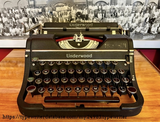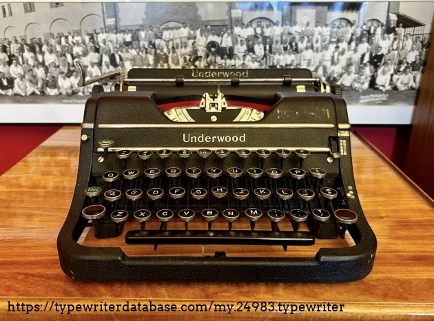 A serviceable Underwood Universal without case... as the Underwood sales force looks on approvingly. Purchased in Garden City, NY in February, 2025.