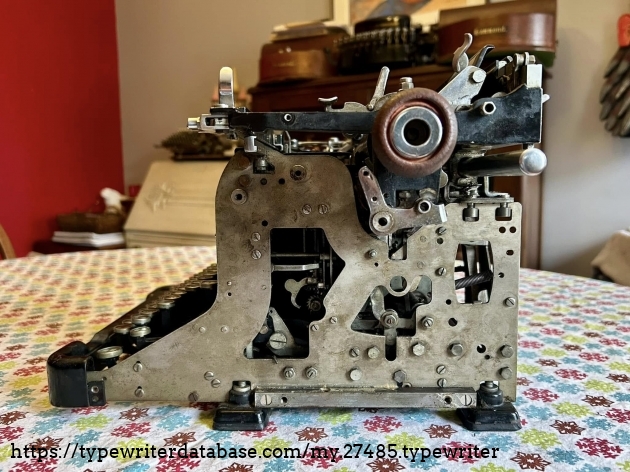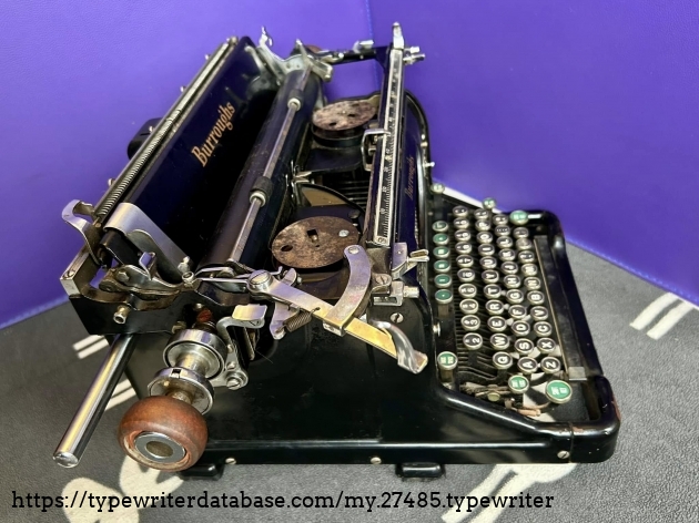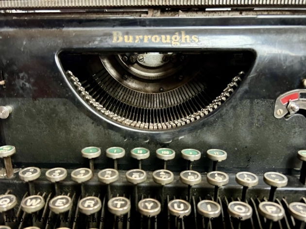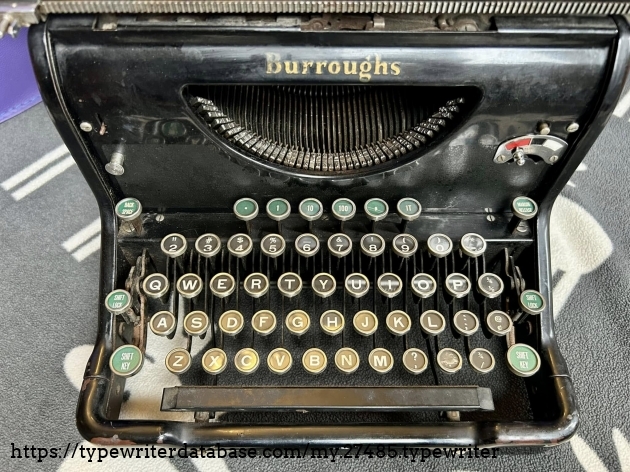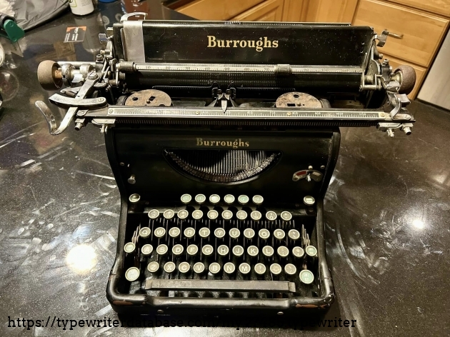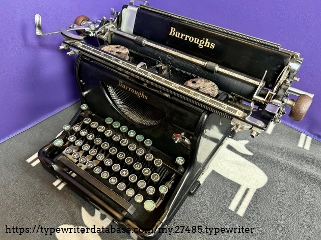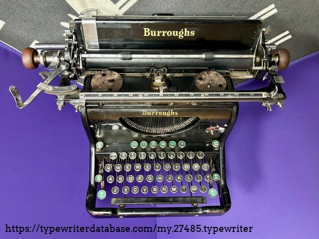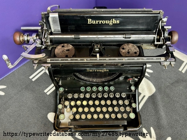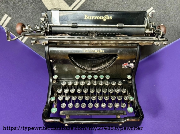 I acquired this Burroughs 50 via trade with a fellow typewriter enthusiast from Hershey, PA in November of 2025. Unfortunately, the carriage is a mess, although it presents well.