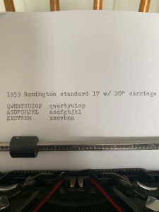 Remington Standard 17; wide carriage model. This machine has an enormous 20” carriage, and it’s a workhorse. It functions perfectly. I got this machine from an antique store.