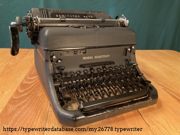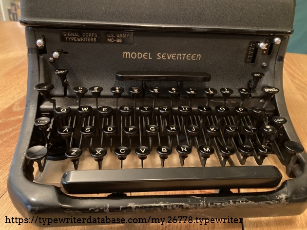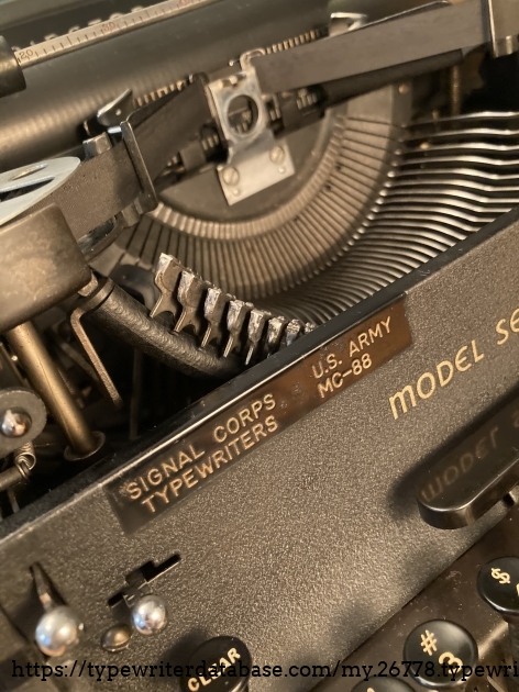 Has a MC-88 Signal Corps front panel. It was covered up by a two-part dealer tag, which fell off while I was moving things around. No MIL keyboard. No indication that the panel came off another machine.