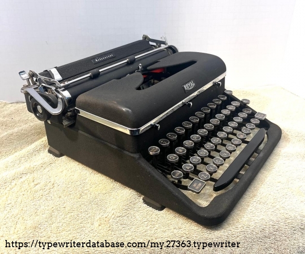 This is a surprisingly quiet typewriter, and does a very decent job. It has the cool "Royal" badge on the case.