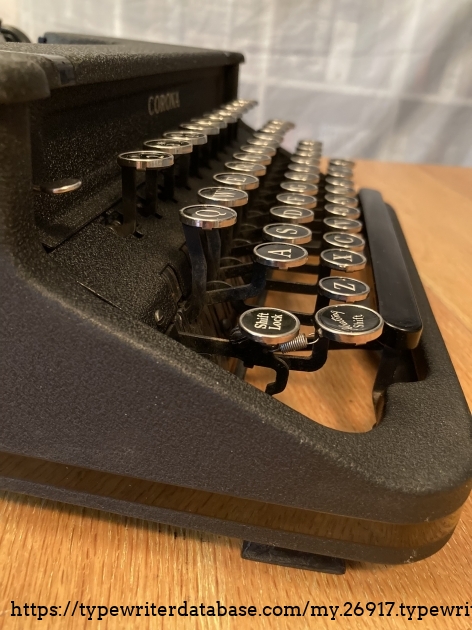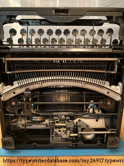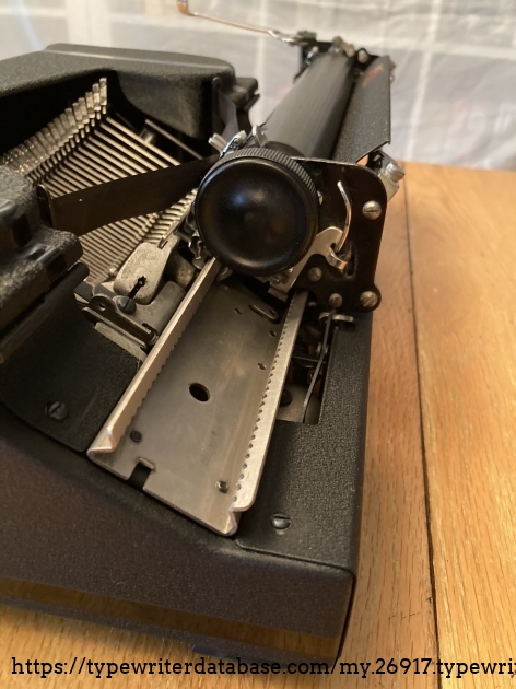 The platen is rough. Still leaves a fair impression on a test ribbon. The line space knob is broken off. I didn't have a machine to canibalize, although a rough 2 series almost gave up the ghost. Some 6 series rollers is all it needed.