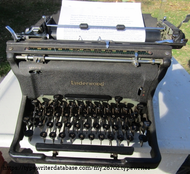 RESEARCH NOTE: When researching the Underwood SS on a computer with lots of screen real estate, you may find that launching the Underwood Serial Number page and the Underwood SS By Model/Year/Serial page in new browser windows can give you interesting perspectives on changes throughout the model series.