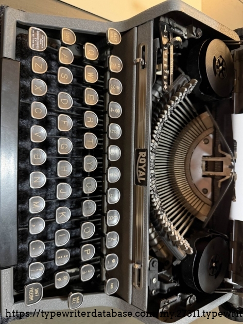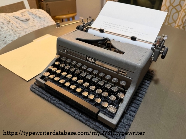 This is my 1949, Royal Quiet De Luxe typewriter in gray.