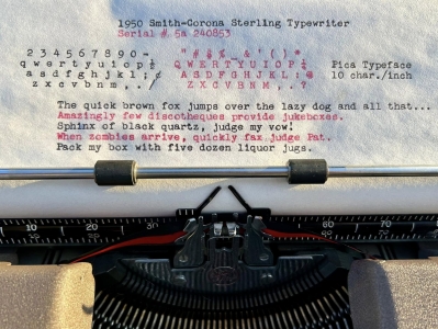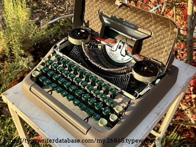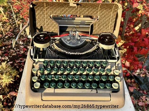 A whistle-clean Sterling, purchased from a fellow typewriter enthusiast in Royersford, PA in November of 2025.