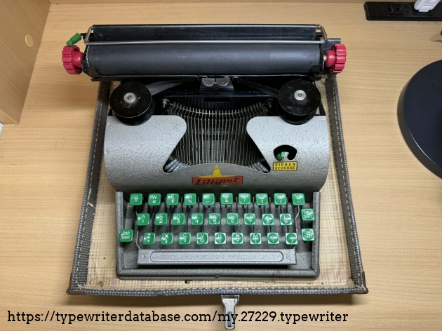 Clean and neatly preserved with its own carrying case. Sadly, the carriage doesn't move.
