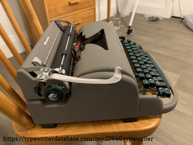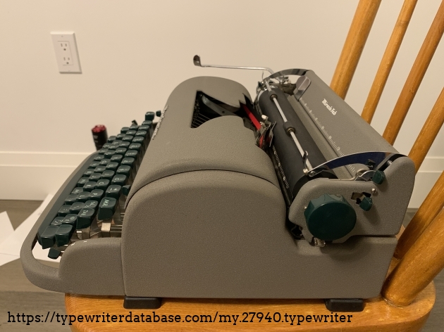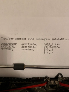 This machine is my preferred heavy-typing typewriter. I came across it in an antique store near St. Jacob’s farmers market. It is the earlier design of quiet-riter, only made in the first two years of this machine’s manufacture; I much prefer this design over the bulbous and smooth design produced onwards. This machine is fully functional and cosmetically excellent.