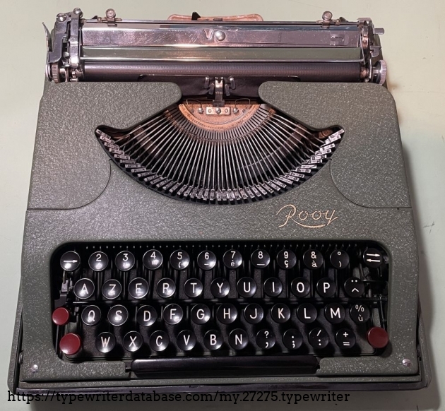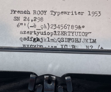 A French version of the Rooy Portable typewriter with a AZERTY keyboard layout. Great machine takes up so little space. Bought at a brocantes near Lyon a number of years ago. T121