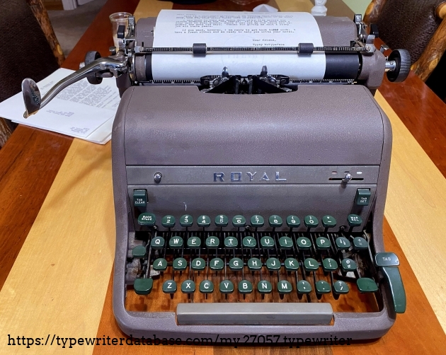 1953 Royal HHP. This beast spent its working life in a hardware store in a small town in rural Eastern Kentucky. After retirement, it was sold at auction in 2015 and spent the next 20 years as window decoration in for a local law office. Now restored to working condition. Even the Magic Margins still work.