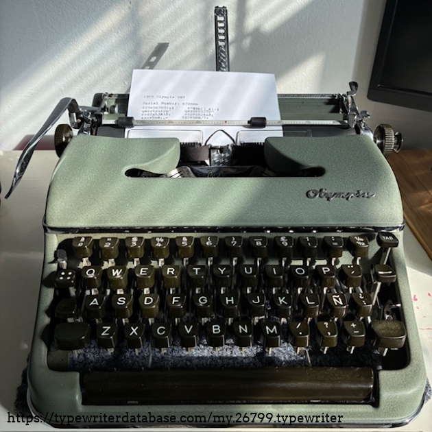 I love to write and found that writing on a typewriter is the most enjoyable and distraction-free way of doing it. I started with an Alphasmart, then moved to a Royalite, then to an Olympia SM5. The Olympia kept me fully satisfied for a good seven years until I got the bit by the collecting bug. Now I am slowly amassing my own personal typewriter museum. Typewriters are like personal printing presses. My partner is an engineer who can fix and clean any typewriter, so we make a great team.