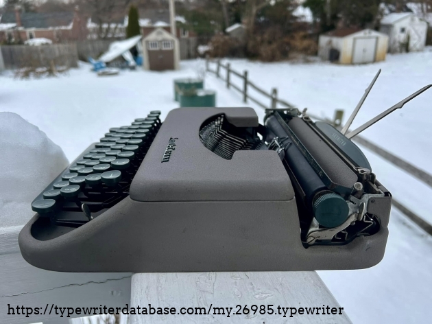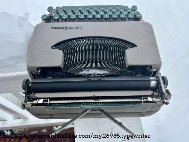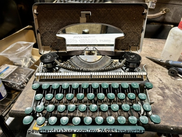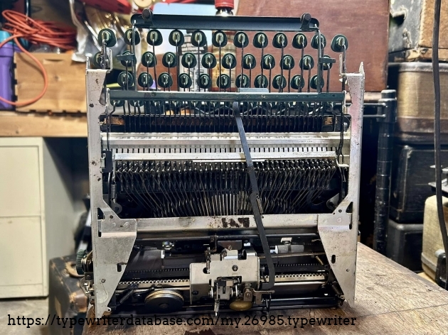 A mess that cleaned-up nicely. No carriage arm, though. Purchased from a fellow typewriter collector in Garden City, NY in March of 2025.