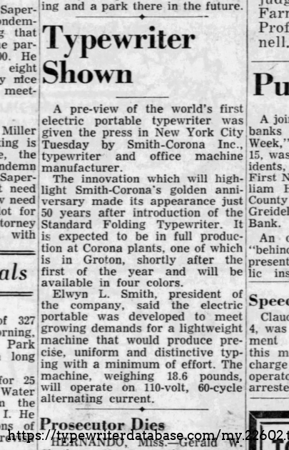 1956 Smith Corona Electric Portable #5TE 103431
