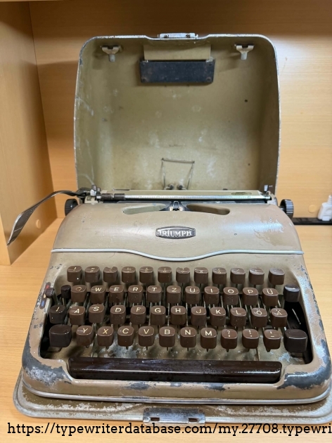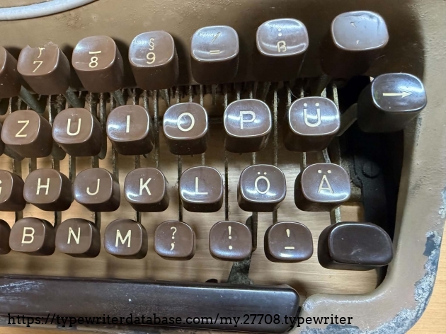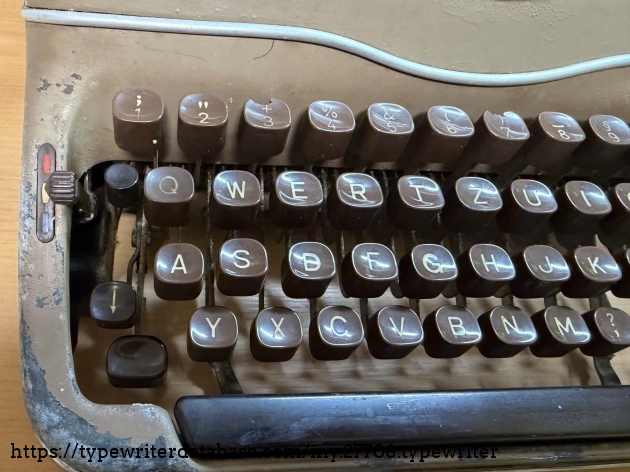 This is a heavy portable German-made machine with German keys. Some paint has peeled off as shown in the pictures. But it works just fine.