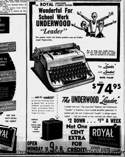 RESEARCH NOTE: When researching the Underwood Leader on a computer with lots of screen real estate, you may find that launching the Underwood Serial Number page and the Underwood Leader By Model/Year/Serial page in new browser windows can give you interesting perspectives on changes throughout the model series.