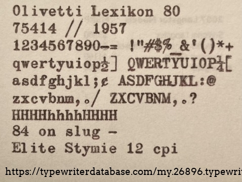 RESEARCH NOTE: When researching the Olivetti Lexikon 80 on a computer with lots of screen real estate, you may find that launching the Olivetti Serial Number page and the Olivetti Lexikon 80 By Model/Year/Serial page in new browser windows can give you interesting perspectives on changes throughout the model series.