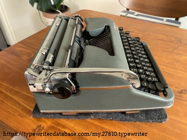 Obtained on FB Marketplace. Needed new bushings and a light cleaning. I sliced up a wine cork as a temporary bushing but they worked well enough to just keep them in there. Pictures show a blue/green ribbon. The blue ink looks a lot like mimeograph.