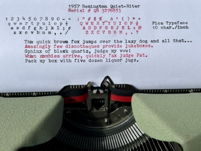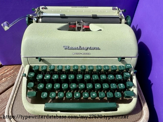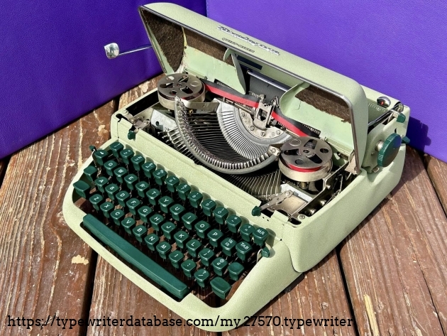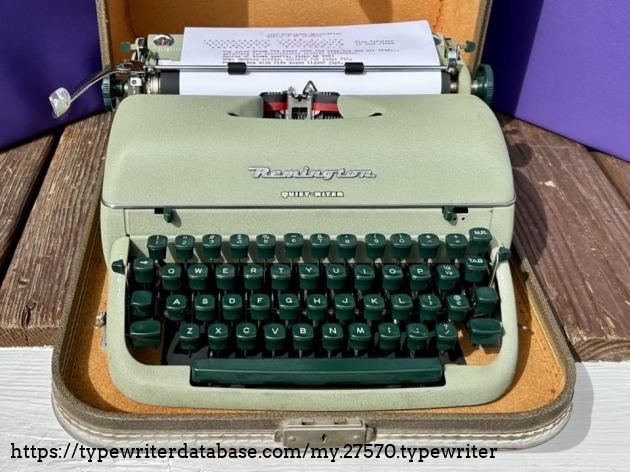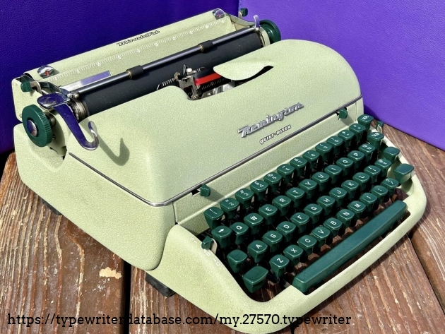 This is a very nice Remington Quiet-Riter in the greenish finish. Acquired from a fellow typewriter enthusiast in Lansdale, PA in February, 2026.