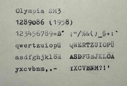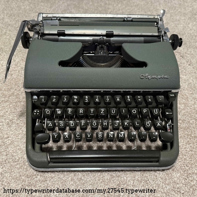 This QWERTZ key layout machine came to me by way of a college friend who acquired it from a German relative. The years have been kind to this machine. It has been carefully stored and maintained, and is in like-new condition. There is no "zero" key, and the right-most key in the upper row, the "accent" key, uniquely does not move the carriage forward when struck. Very unusual in my experience. Unfortunately this typewriter came to me without a case. Since I rarely type in German and since I have two SM3 in my collection already, I've let this item go on to a new owner.