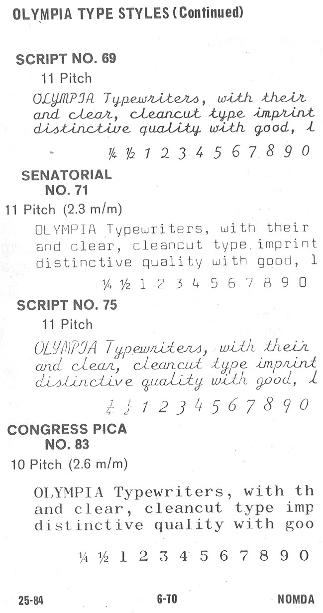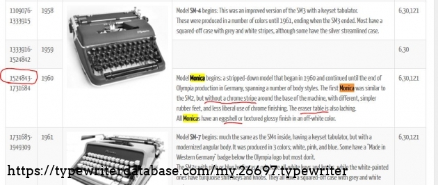 RESEARCH NOTE: When researching the Olympia Monica on a computer with lots of screen real estate, you may find that launching the Olympia Serial Number page and the Olympia Monica By Model/Year/Serial page in new browser windows can give you interesting perspectives on changes throughout the model series.