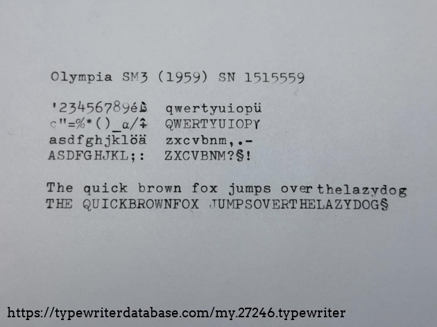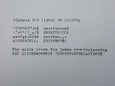 RESEARCH NOTE: When researching the Olympia SM3 on a computer with lots of screen real estate, you may find that launching the Olympia Serial Number page and the Olympia SM3 By Model/Year/Serial page in new browser windows can give you interesting perspectives on changes throughout the model series.