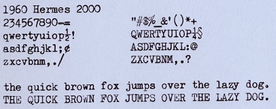 I had always heard that the Hermes 2000 line had a significantly different feel from the 3000, but was surprised by just how marked a difference that actually is until acquiring this machine. Whereas the 3000 lives up to its reputation as having a soft touch, the 2000 has a lot of snap - almost more like an Olympia SM. I would owe a lot of that, however, to the design being largely three decades old by the time of this particular machine's manufacture, so while its aesthetics very much reflect Hermes' 1960s livery, mechanically, it is still very much a product of the 1930s.