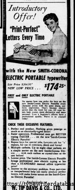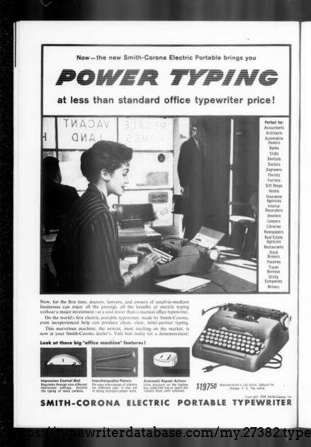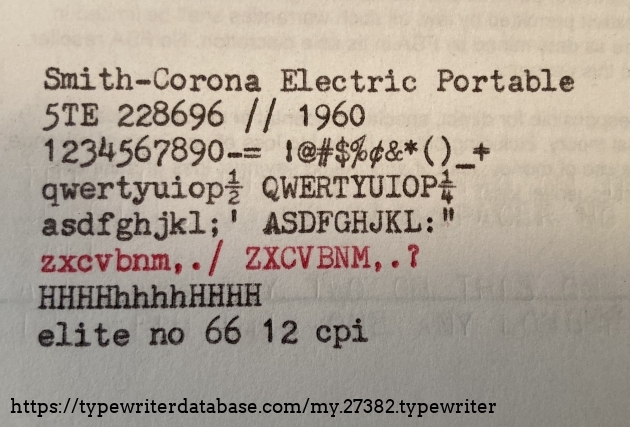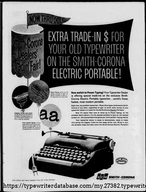 1960 Smith Corona Electric Portable #5TE228696